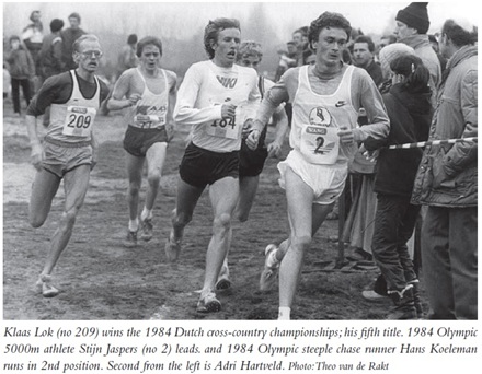 Dutchman Adri Hartveld finished 5th in the Dutch Cross Country Championships in 1984 (photo below) and won the Dutch marathon title in 1986. He has worked as a physiotherapist in the UK since 1982 and, during that time, has assessed hundreds of runners with overuse injuries. As part of the assessment, Adri looked at both the athletes’ biomechanics and their training history. He also researched various training ideas and methodologies, including easy interval training, which brought him success.